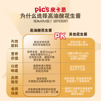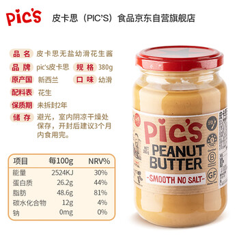 皮卡思pics花生酱无添加盐幼滑无添加糖健身火锅蘸料抹面包酱意面380g