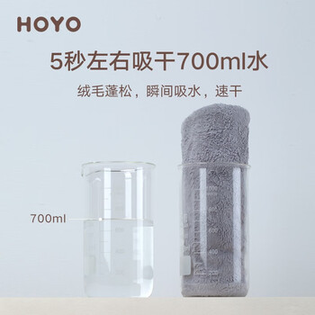 HOYO日本雪滑绒干发帽干发巾两件套 洗澡洗头柔软速干家用毛巾女 灰色