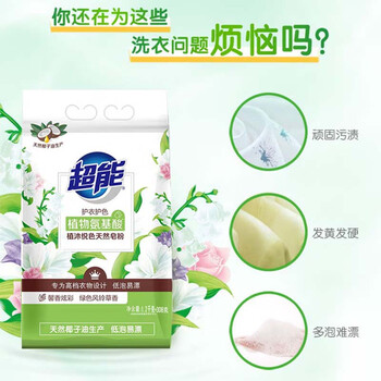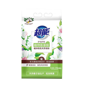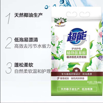 超能 洗衣粉 植沐悦色天然皂粉护衣护色、绿色风铃草香1.2千克