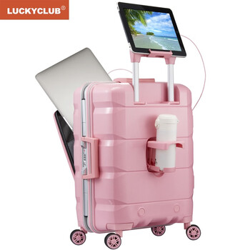 LUCKY CLUB 行李箱学生少女铝框拉杆箱前置开口旅行小型高颜值登机箱20英寸