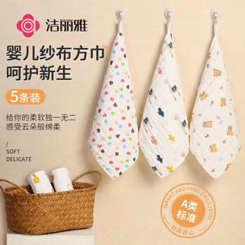 洁丽雅(Grace)婴儿小毛巾A类 6层纱布口水巾儿童宝宝洗脸小方巾 5条装