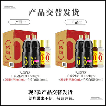 千禾【0添加】生抽1.52kg*2+白醋500ml+料酒500ml礼盒【交替发货】