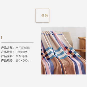 恒源祥毛毯办公室午睡空调毯子保暖家用沙发盖毯披肩四季款1.8*2m格子间