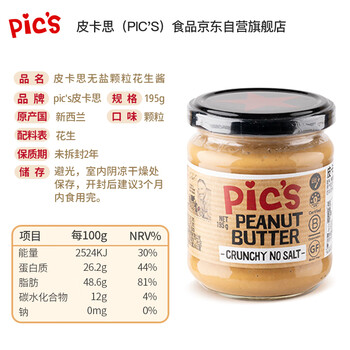 皮卡思不添加盐颗粒花生酱195g一瓶