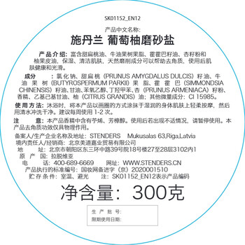 施丹兰(STENDERS)葡萄柚磨砂盐300g 调理身体去角质磨砂膏 男女友礼物