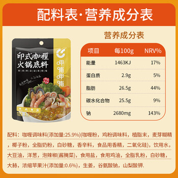 呷哺呷哺印式咖喱火锅底料 麻辣烫冒菜调味料 咖喱味火锅食材180g