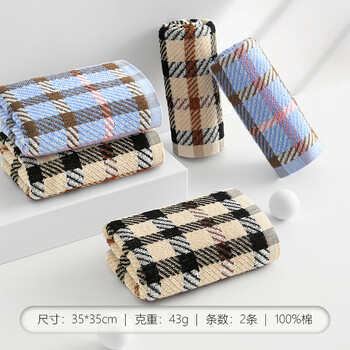 新亚纯棉大方巾2条装全棉小毛巾洗脸巾儿童面巾擦手巾手帕35×35cm