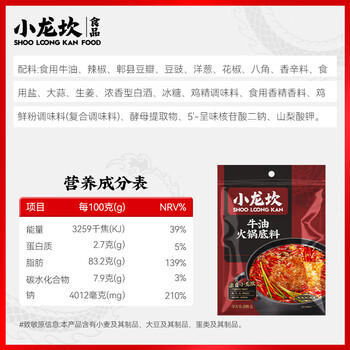 小龙坎牛油火锅底料198g/袋 四川重庆特产麻辣烫香锅冒菜串串调味料