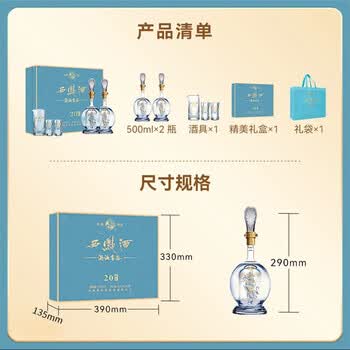 西凤酒 酒海窖龄20年52度藏品礼盒500ml*2瓶、分酒器*1个、白酒杯*2个、礼盒*1个、礼品袋*1个