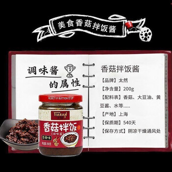 太然香菇酱 拌面酱下饭菜辣椒酱火锅蘸料夹馍酱 香菇拌饭酱(红标)200g/2瓶