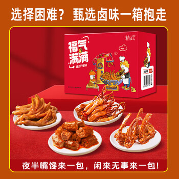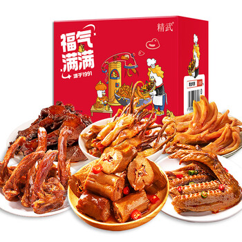 精武零食大礼包全荤517g鸭脖锁骨翅鸭舌鸭货节日团购送礼成人儿童休闲