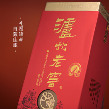 泸州老窖 八年窖头曲 酒庄红八1号 浓香型白酒 52度500ml*6瓶 整箱装