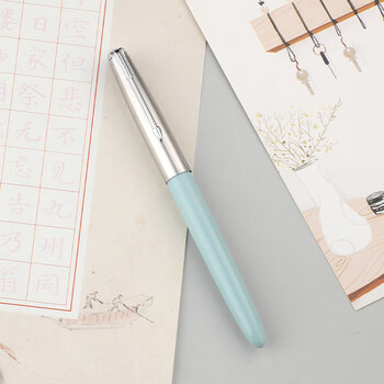 英雄(HERO)钢笔 616小号 复古铱金学生日常书写练字墨水笔 暗尖F 莫兰迪天蓝