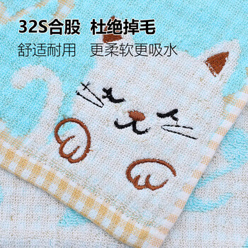 新亚纯棉小猫咪儿童毛巾2条装A类吸水洗脸小毛巾手帕面巾 25*49cm
