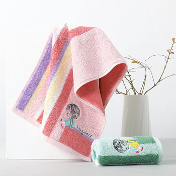 金号A类儿童毛巾纯棉100%洗脸小毛巾洗脸帕小孩毛巾女士面巾2条