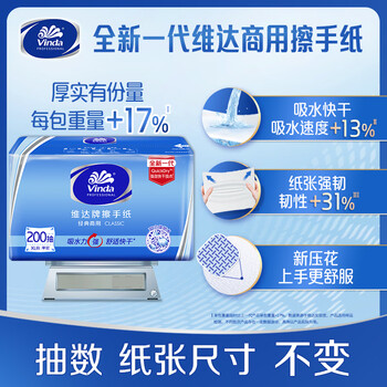 维达擦手纸200抽*20包XL抽纸纸巾整箱销售VS2060