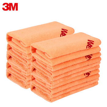 3M洗车毛巾擦车布洗车布细纤维强吸水橙色10条装40cm*40cm