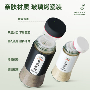 吉得利黑胡椒粉白胡椒粉60g*2 双瓶省心装 亲肤玻璃烤瓷瓶 炒菜煲汤粉料