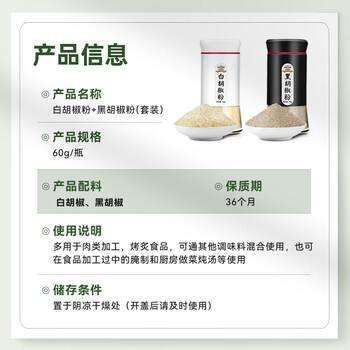 黑胡椒粉60g*1,白胡椒粉60g*1