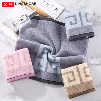 金号 儿童毛巾 纯棉经典加厚方巾 灰/棕/紫 混色3条装 36*35cm