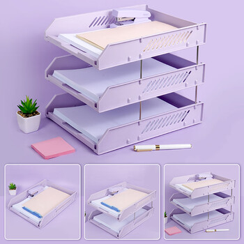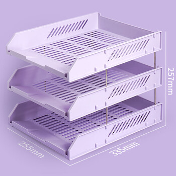 西玛(SIMAA)莫兰迪三层镂空收纳文件座 自由拆卸组装三层文件盘/文件框/文件架 办公用品 香芋紫6357
