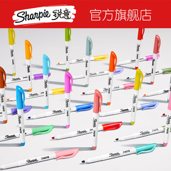 锐意(Sharpie)创意彩色水性马克笔记号笔防褪色速干学生绘画涂色DIY进口窄斜笔头4色装美术写生水彩笔美育