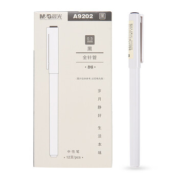 晨光中性笔本味AGPA9202黑0.5(纯白杆针管)12支/1盒