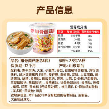 海福盛 排骨菌菇粥 6杯(猛料版) 228g