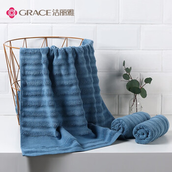洁丽雅(Grace)纯棉毛巾浴巾两件套 A类长绒棉洗脸洗澡柔软吸水速干大面巾 蓝色