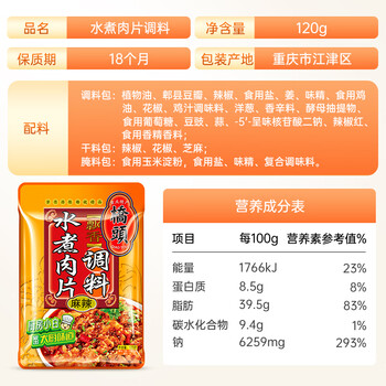 桥头重庆麻辣水煮肉片调料120g水煮牛肉毛血旺牛蛙调料家用调料包