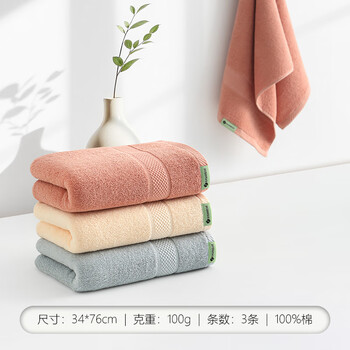 新亚毛巾纯棉加厚大毛巾3条成人洗澡洗脸巾吸水不掉毛干发巾34×76cm