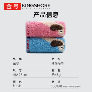 金号毛巾家纺 纯棉A类婴儿柔软洗脸面巾 二条装 红/蓝 45g/条
