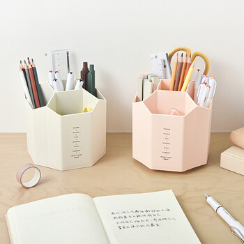 三年二班5格创意个性旋转笔筒办公桌笔筒收纳盒多功能笔桶大容量办公桌面收纳盒储物盒透明白可旋转
