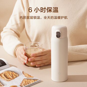 京东京造保温杯 水杯子男女儿童学生316不锈钢【一键弹盖】白色480ml