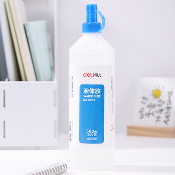 得力(deli)6357液体胶(透明)(500ml/瓶)3瓶500ml专用液体胶水 高粘度可水洗 透明无色大容量