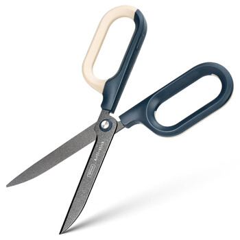 得力(deli)大号弧形特氟龙省力剪刀 德国创意设计特氟龙防粘胶复古色系双拼色设计 蓝色QG157