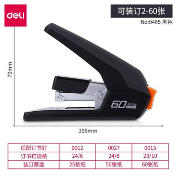 得力(deli)加厚订书器 办公用省力型钉书机 多功能大号大型定书机装订机 60页 0465 颜色随机 1个装