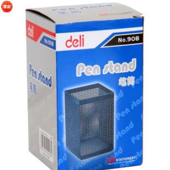 得力(deli)908金属网纹方形办公笔筒黑色 1个装