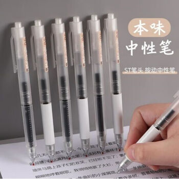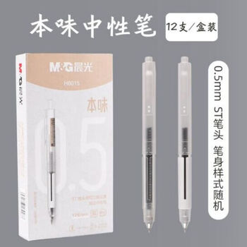 晨光0.5mmAGPH8015本味系列按动中性笔0.5速干尖锥st学生用黑色碳素水性签字笔芯考试专用高颜值12支/盒装