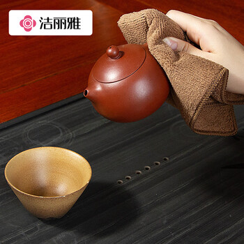洁丽雅 加厚茶巾6条装茶具配件茶台方巾毛巾擦桌子清洁抹布 棕色3+灰色3