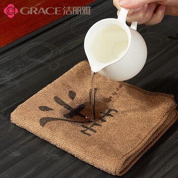 洁丽雅 加厚茶巾2条装 茶具配件茶垫方巾毛巾擦桌子清洁抹布家用棕色2条