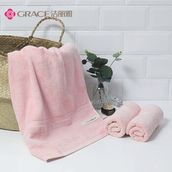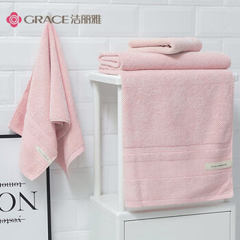 洁丽雅(Grace)鲁道夫抗菌毛巾浴巾纯棉成人柔软吸水加厚全棉男女家用三件套 粉
