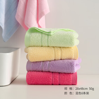 竹一百毛巾竹纤维成人小毛巾洗脸巾擦手巾吸水小面巾儿童毛巾6条28*48cm