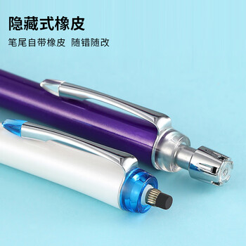 uni三菱自动铅笔活动铅笔 0.5mm不断铅绘图学生铅笔带橡皮擦头 白色(白杆白胶)M5-809GG 1支装
