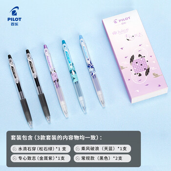 百乐(PILOT)Juice按动果汁中性笔 商用办公经典故事系列水滴石穿套装0.5mm5支装(3支经典故事+2支黑色)