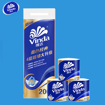 维达(Vinda) 卷纸 蓝色经典4层200克*30卷 卫生卷筒纸 纸巾(3提共30卷)