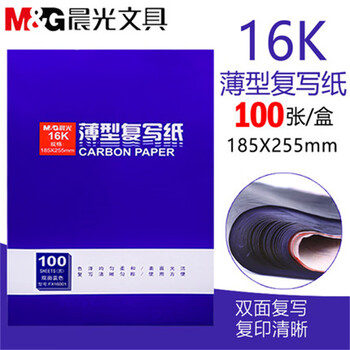 晨光办公复写纸蓝色复印纸48k双面复写纸色泽柔和不沾手透蓝纸薄型复刻纸过底纸48k100张 APYVA608 5本装