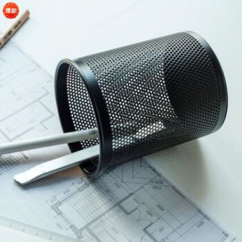 得力(deli)909密集金属网纹圆形办公笔筒黑色 (单位:1个装)(黑色)