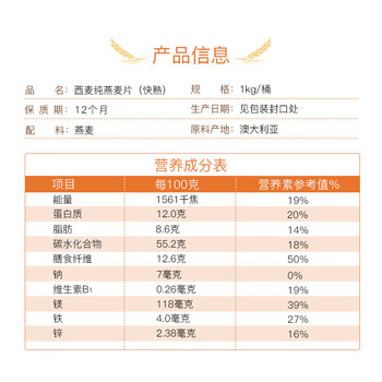 西麦全粒快熟燕麦片1000g桶冲饮谷物营养早餐膳食纤维无额外添加蔗糖