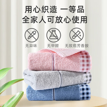 亚光纯棉毛巾精梳长绒棉A类柔软亲肤吸水洗脸巾3条装巅峰面巾蓝/灰/粉